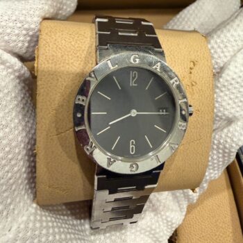 「ブルガリ・ブルガリ」があしらわれた金具がワンポイント。